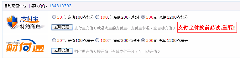 1、選擇要充值的金額、充值平臺,點擊確定購買: |