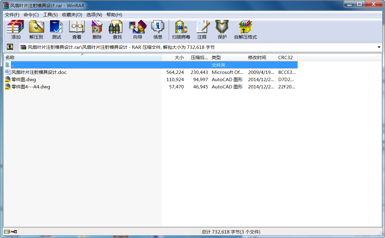 風扇葉片注射模具設計_下載(rar格式) 成套圖紙