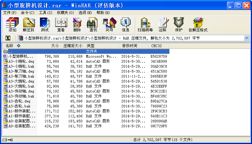 小型旋耕機設計_下載(rar格式) 成套圖紙
