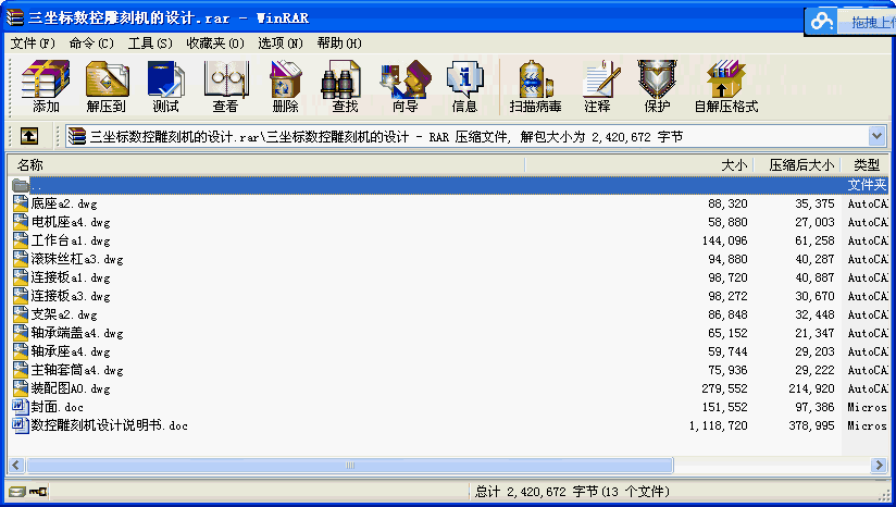 三坐標數控雕刻機的設計_下載(rar格式) 成套圖紙