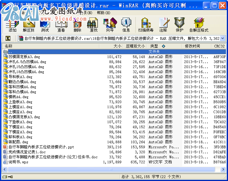 自行車腳蹬內板多工位級進模設計_下載(rar格式) 成套圖紙