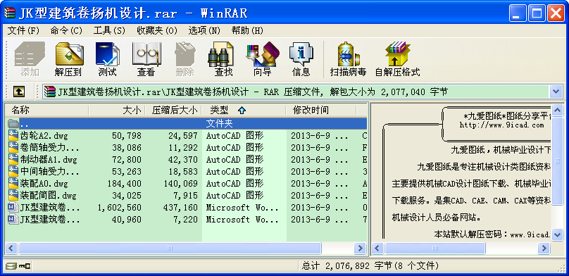 JK型建筑卷揚機設計_下載(rar格式) 成套圖紙